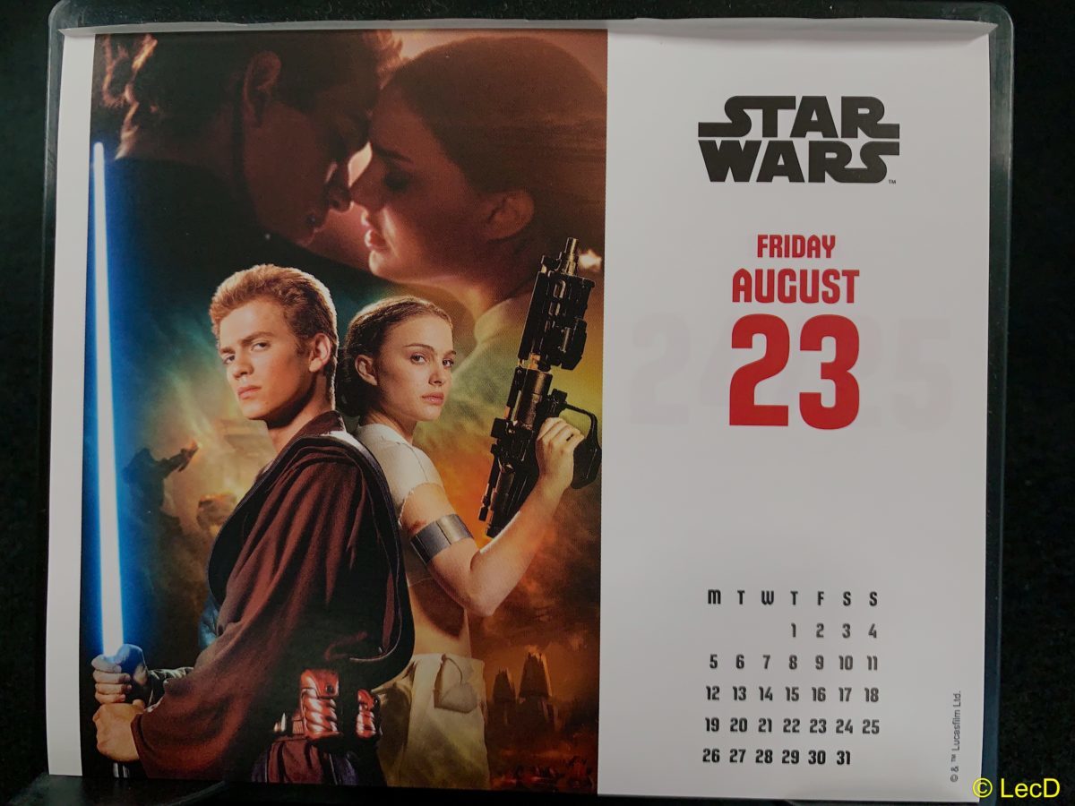 こんにちは。マスター・テッドです。 今日は8月23日 金曜日。 がんばって参りましょう。 今日のスター・ウォーズ カレンダー画像はこれ。 アナキン・スカイウォーカーとパドメ!! お似合いのカップルですが、銀河を恐怖のどん底... -