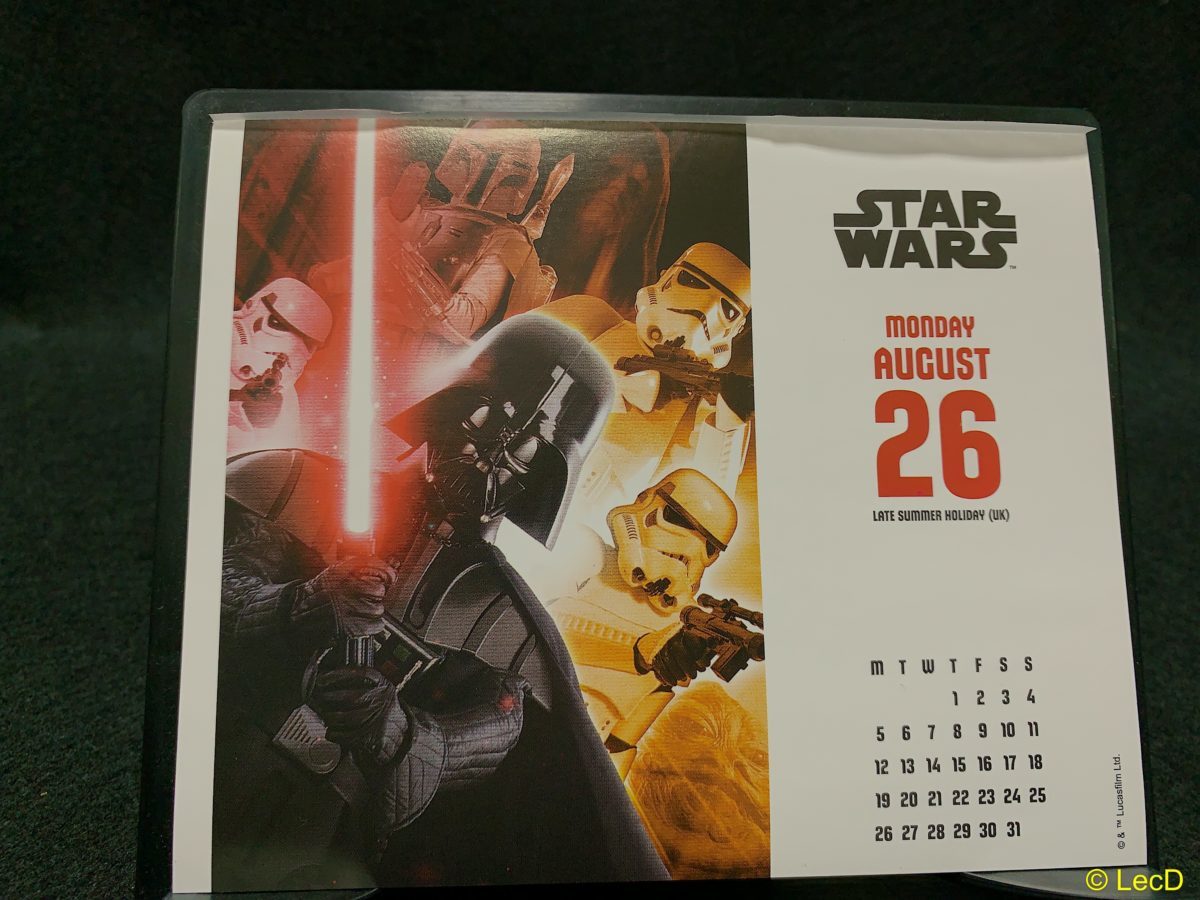 こんにちは。マスター・テッドです。 今日は8月26日 月曜日。 がんばって参りましょう。 今日のスター・ウォーズ カレンダー画像はこれ。 ダース・ベイダー! っていっていいのだろうかね。 ジャバもストームトルーパーも、ボバ・... -