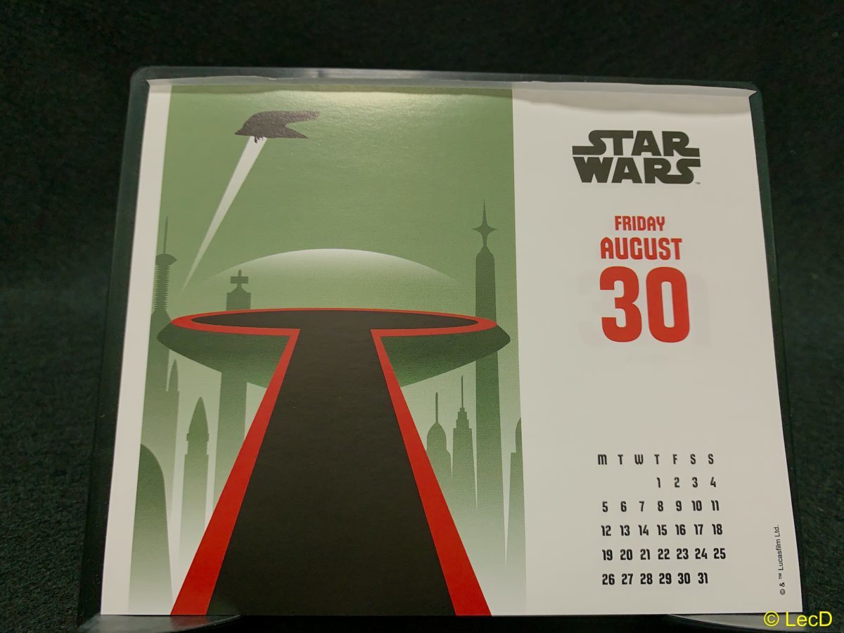 こんにちは。マスター・テッドです。 今日は8月30日 金曜日。 がんばって参りましょう。 今日のスター・ウォーズ カレンダー画像はこれ。 ベスピンの光景! なんだけどデザインがボバ・フェット!! すげえですねえ。 こういうの、よく... -