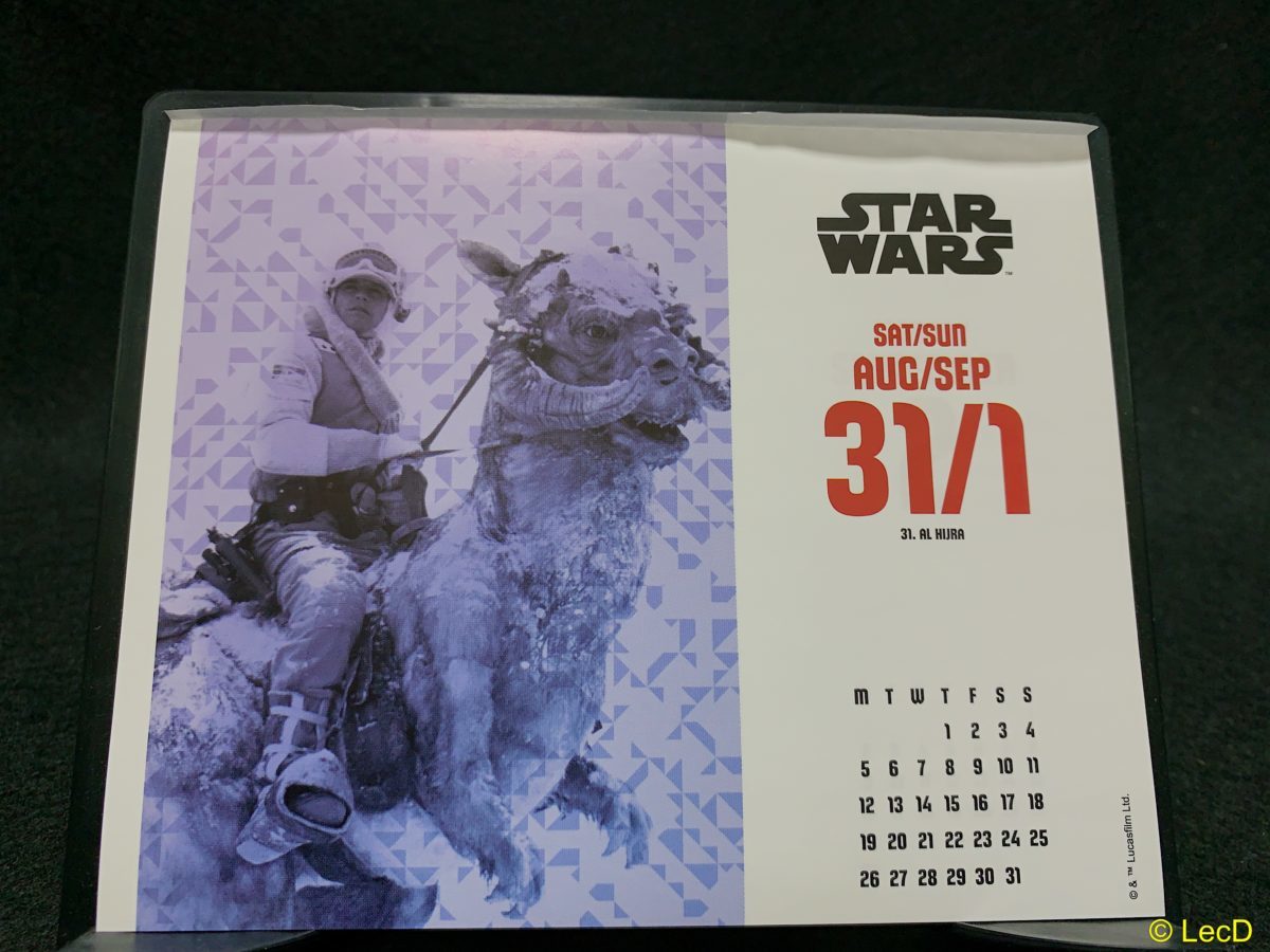 こんにちは。マスター・テッドです。 今日は8月31日 土曜日。明日9月1日の分も合わせて紹介だ! ってか、もう8月終わりかよ・・・・・・。 週末もがんばって参りましょう。 今日のスター・ウォーズ カレンダー画像はこれ。 ルーク・スカ... -