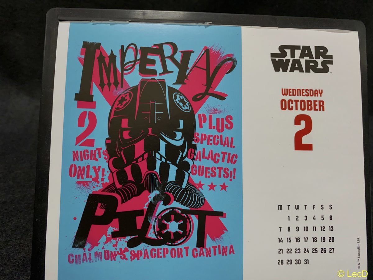 こんにちは。マスター・テッドです。 今日は10月2日 水曜日。 がんばって参りましょう。 今日のスター・ウォーズ カレンダー画像はこれ。 またライブ告知でしょうかね、帝国軍。 帝国軍パイロットのライブ、なんのじぇんる出曲やるんで... -