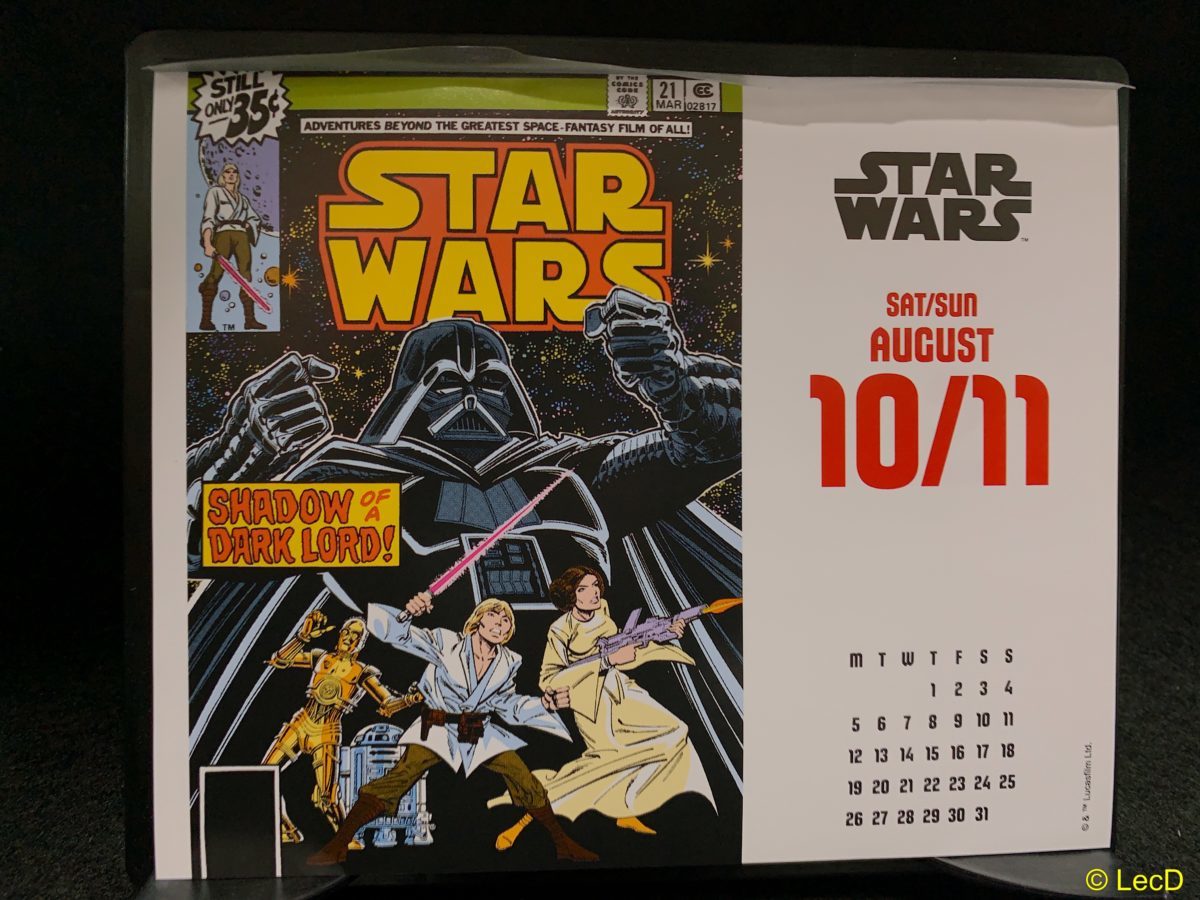 こんにちは。マスター・テッドです。 今日は8月10日 土曜日。明日11日の分も合わせて紹介だ! 週末もがんばって参りましょう。 今日のスター・ウォーズ カレンダー画像はこれ。 ぐあ!またアメコミものだよ。 アメコミ、キライじゃない... -