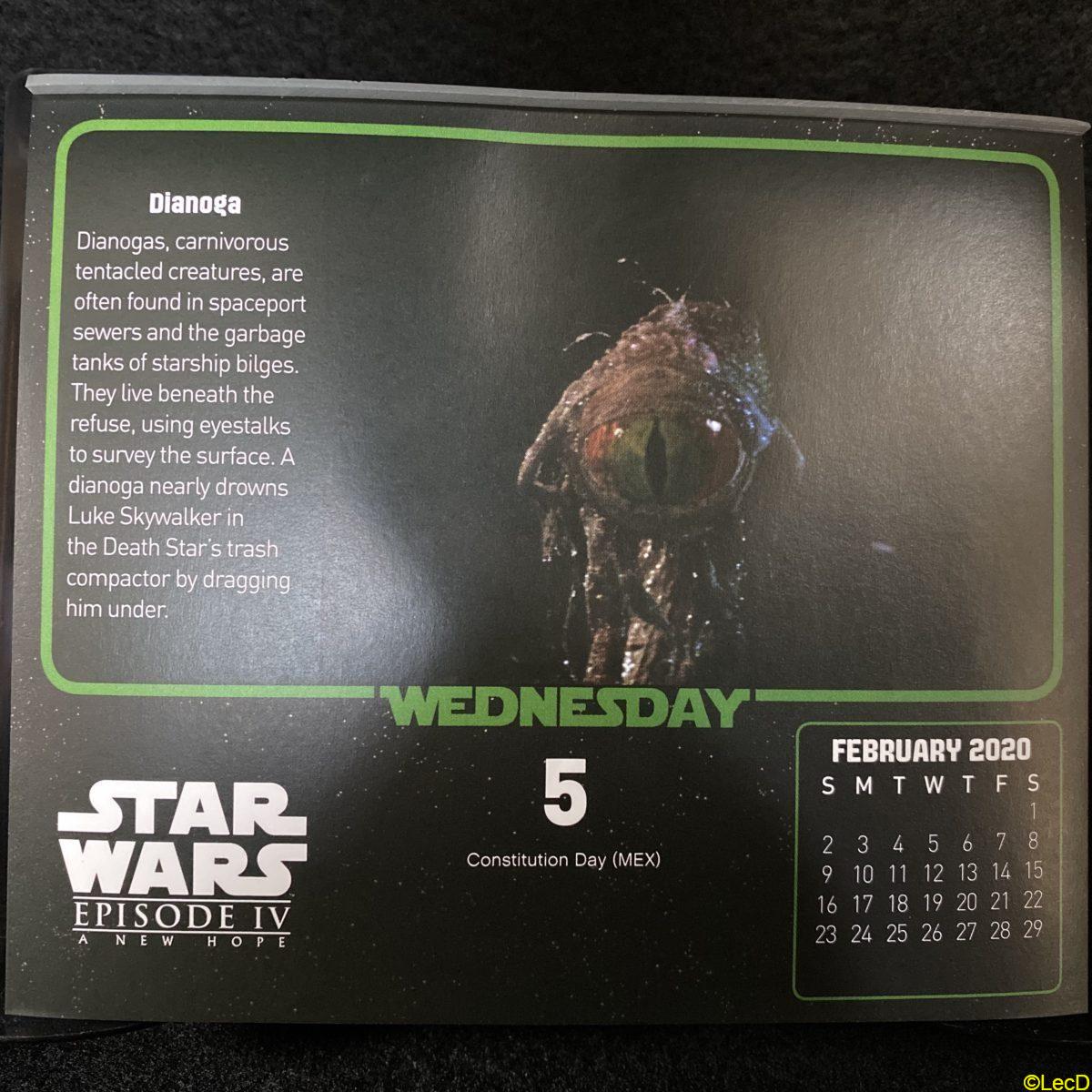 Calendar 2020-02-05こんにちは。マスター・テッドです。 今日は2月5日 水曜日。久々の徹夜できつい。 がんばって参りましょう。 本日のスター・ウォーズ カレンダー画像はこれ。 新たなる希望よりダイアノーガ! Google翻訳によると 肉食性の触手の生き物であるディアノガデ...