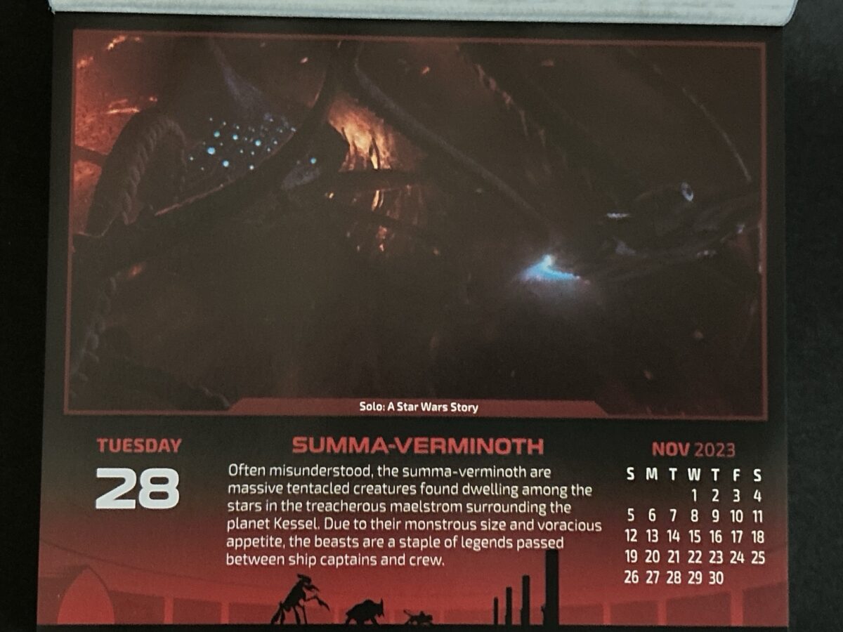 スマ=ヴァーミノス Calendar 2023-11-28こんにちは。マスター・テッドです。 今日は11月28日 火曜日。 がんばって参りましょう。 本日のスター・ウォーズ カレンダー画像はこれ。 ハン・ソロ/スター・ウォーズ・ストーリーよりスマ=ヴァーミノス! 写真見てもよくわからんけど名前聞いてもわか...