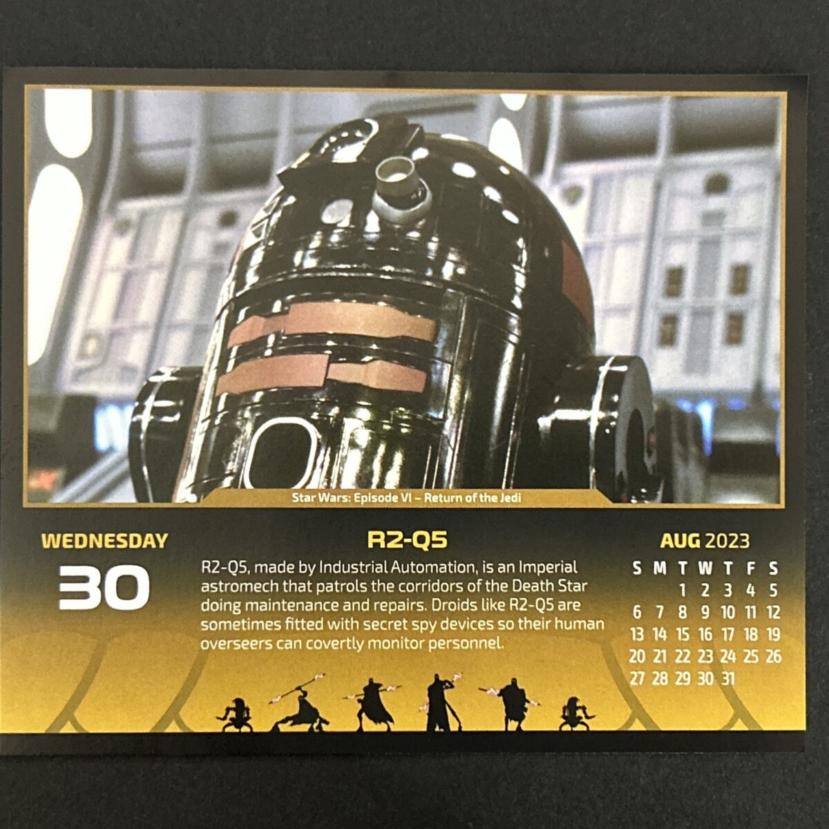 こんにちは。マスター・テッドです。 今日は8月30日 水曜日。 今夜のアソーカも楽しみですね。 それまできっちりがんばって参りましょう。 本日のスター・ウォーズ カレンダー画像はこれ。 スター・ウォーズ:エピソードⅥ-ジェダイの帰還よりR2-Q5! Googl... -