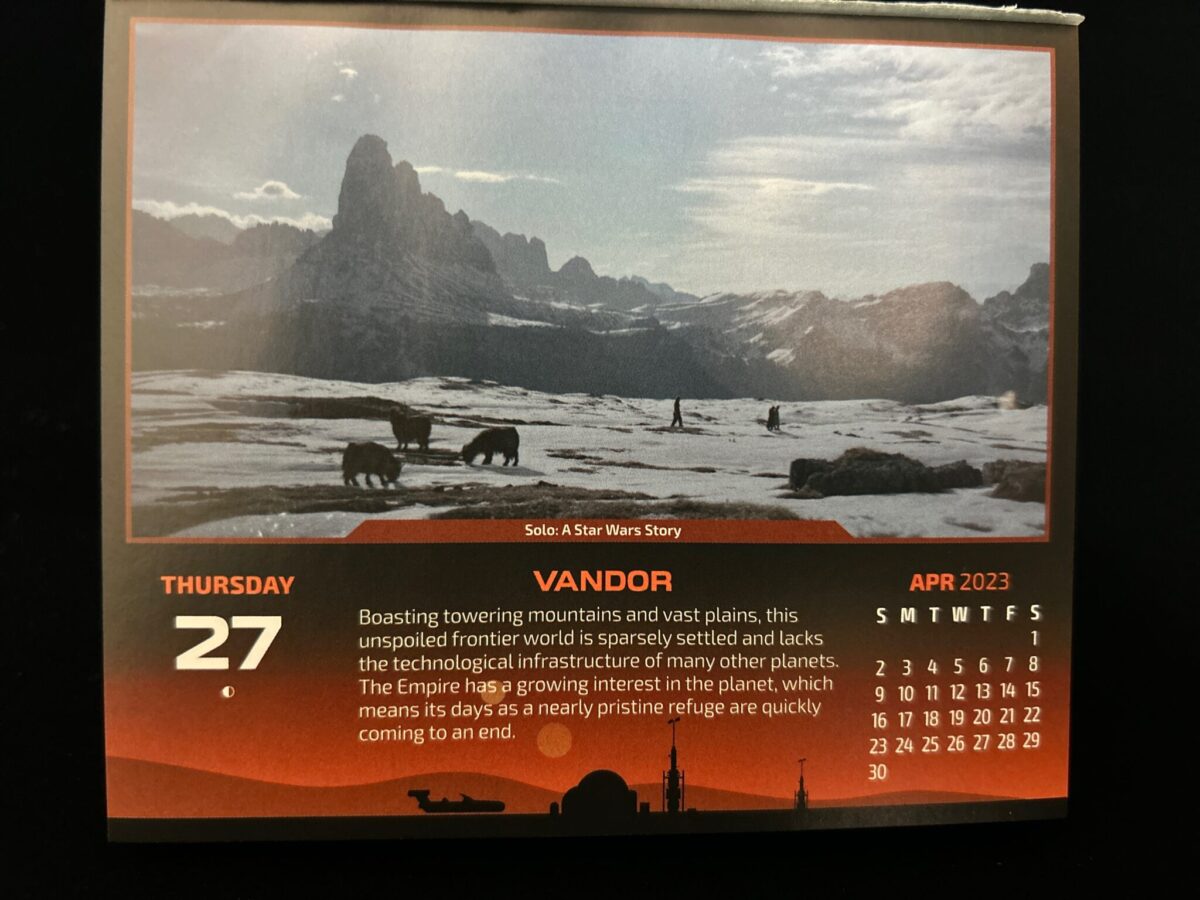 こんにちは。マスター・テッドです。 今日は4月27日 木曜日。 がんばって参りましょう。 本日のスター・ウォーズ カレンダー画像はこれ。 ハン・ソロ/スター・ウォーズ・ストーリーよりヴァンドア! Google翻訳によると Boasting towering mountains and ... -