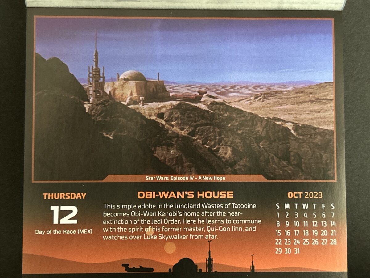 こんにちは。マスター・テッドです。 今日は10月12日 木曜日。 がんばって参りましょう。 本日のスター・ウォーズ カレンダー画像はこれ。 スター・ウォーズ:エピソードⅣ-新たなる希望よりオビ=ワンの家! カレンダー、ネタ切れなのか? 遂にお宅訪問で...