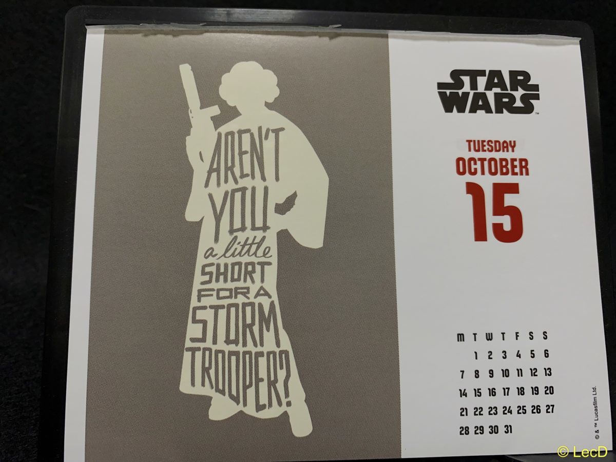 こんにちは。マスター・テッドです。  今日は10月15日 火曜日。  がんばって参りましょう。  今日のスター・ウォーズ カレンダー画像はこれ。 レイア・オーガナ! レイアもよくこのカレンダー登場しますよねえ。 嫌いなキャラではありませ...