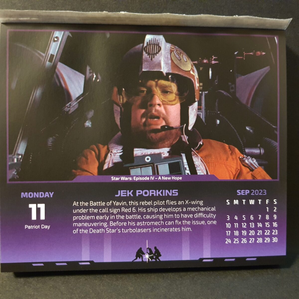 こんにちは。マスター・テッドです。 今日は9月11日 月曜日。 がんばって参りましょう。 本日のスター・ウォーズ カレンダー画像はこれ。 スター・ウォーズ:エピソードⅣ-新たなる希望よりジェック・ポーキンス! うん、誰?と思ったよ。 Google翻訳による... -