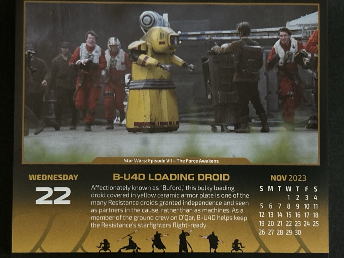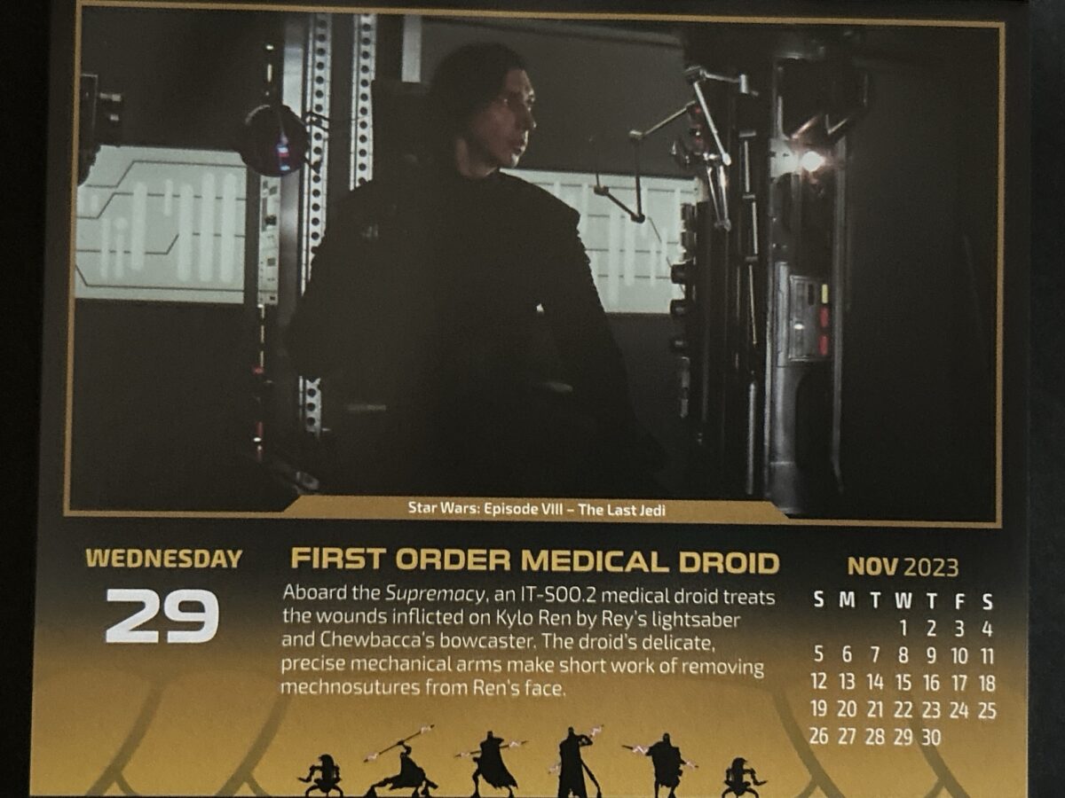 ファースト・オーダー・メディカル・ドロイド Calendar 2023-11-29