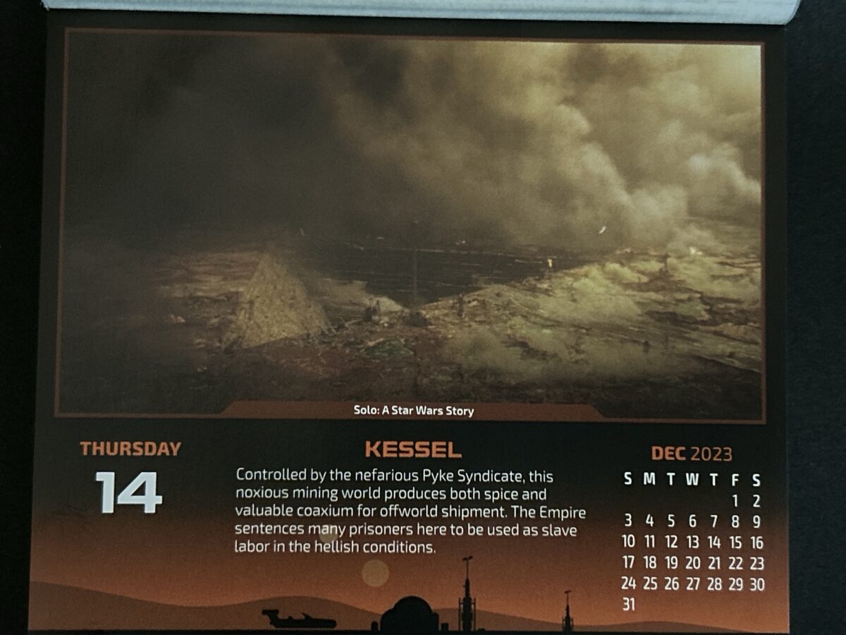 こんにちは。マスター・テッドです。 今日は12月14日 木曜日。 がんばって参りましょう。 本日のスター・ウォーズ カレンダー画像はこれ。 ハン・ソロ/スター・ウォーズ・ストーリーよりケッセル! しかしこの写真だけではケッセルってわかりませんがな。... -