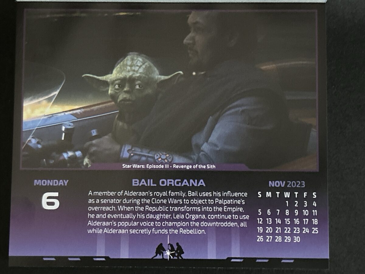 こんにちは。マスター・テッドです。 今日は11月6日 月曜日。 今日からカレンダー再開!お休みした分はそのうちまとめて。 がんばって参りましょう。 本日のスター・ウォーズ カレンダー画像はこれ。 スター・ウォーズ:エピソードⅢ-シスの復讐よりベイル... -