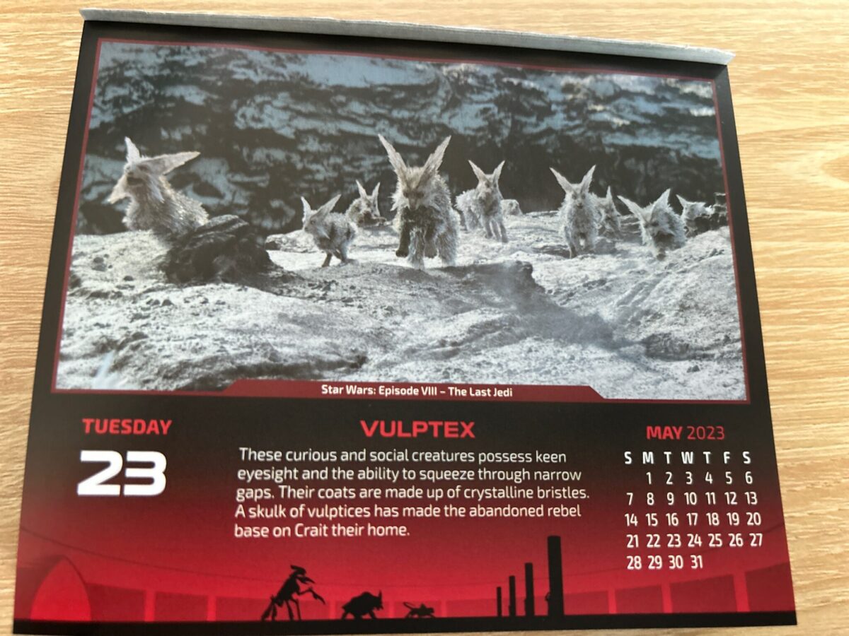 こんにちは。マスター・テッドです。 今日は5月23日 火曜日。 がんばって参りましょう。 本日のスター・ウォーズ カレンダー画像はこれ。 スター・ウォーズ:エピソードⅨ-スカイウォーカーの夜明けよりヴァルプテックス! うん、えーと。 このブログを見て... -
