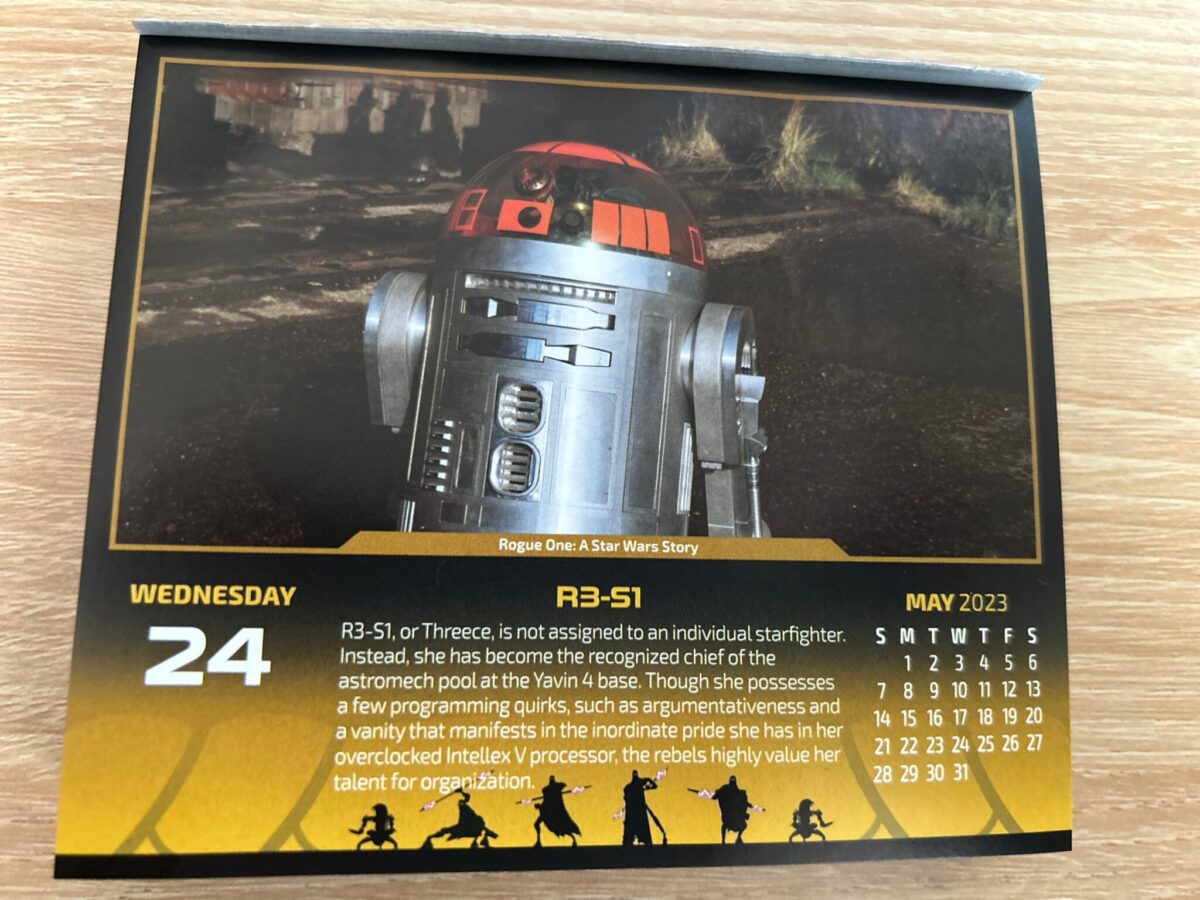 こんにちは。マスター・テッドです。 今日は5月24日 水曜日。 がんばって参りましょう。 本日のスター・ウォーズ カレンダー画像はこれ。 ローグ・ワン/スター・ウォーズ・ストーリーよりR3-S1! 画像でないなあ?? Google翻訳によると R3-S1, or Threec... -