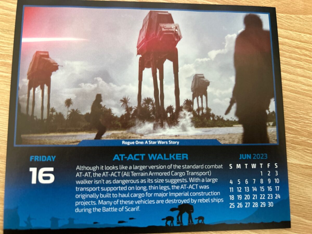 こんにちは。マスター・テッドです。 今日は6月16日 金曜日。 花金だ!!がんばって参りましょう。 本日のスター・ウォーズ カレンダー画像はこれ。 ローグ・ワン/スター・ウォーズ・ストーリーよりAT-ACTウォーカー! とても好き!! Google翻訳によると... -