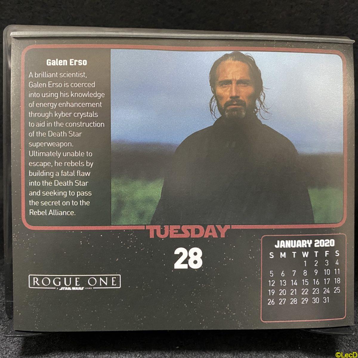 こんにちは。マスター・テッドです。 今日は1月28日 火曜日。 がんばって参りましょう。 本日のスター・ウォーズ カレンダー画像はこれ。 ローグ・ワンよりゲイレン・アーソ! Google翻訳によると 華麗な科学者であるGalen Ersoは、カイバークリスタルによ... -