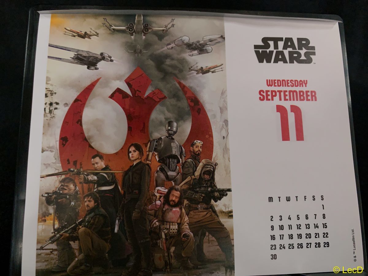 こんにちは。マスター・テッドです。 今日は9月11日 水曜日。 がんばって参りましょう。 今日のスター・ウォーズ カレンダー画像はこれ。 ジン・アーソをはじめとしたローグ・ワンの面々! この絵、イイですねえ。 配置的に素晴ら...