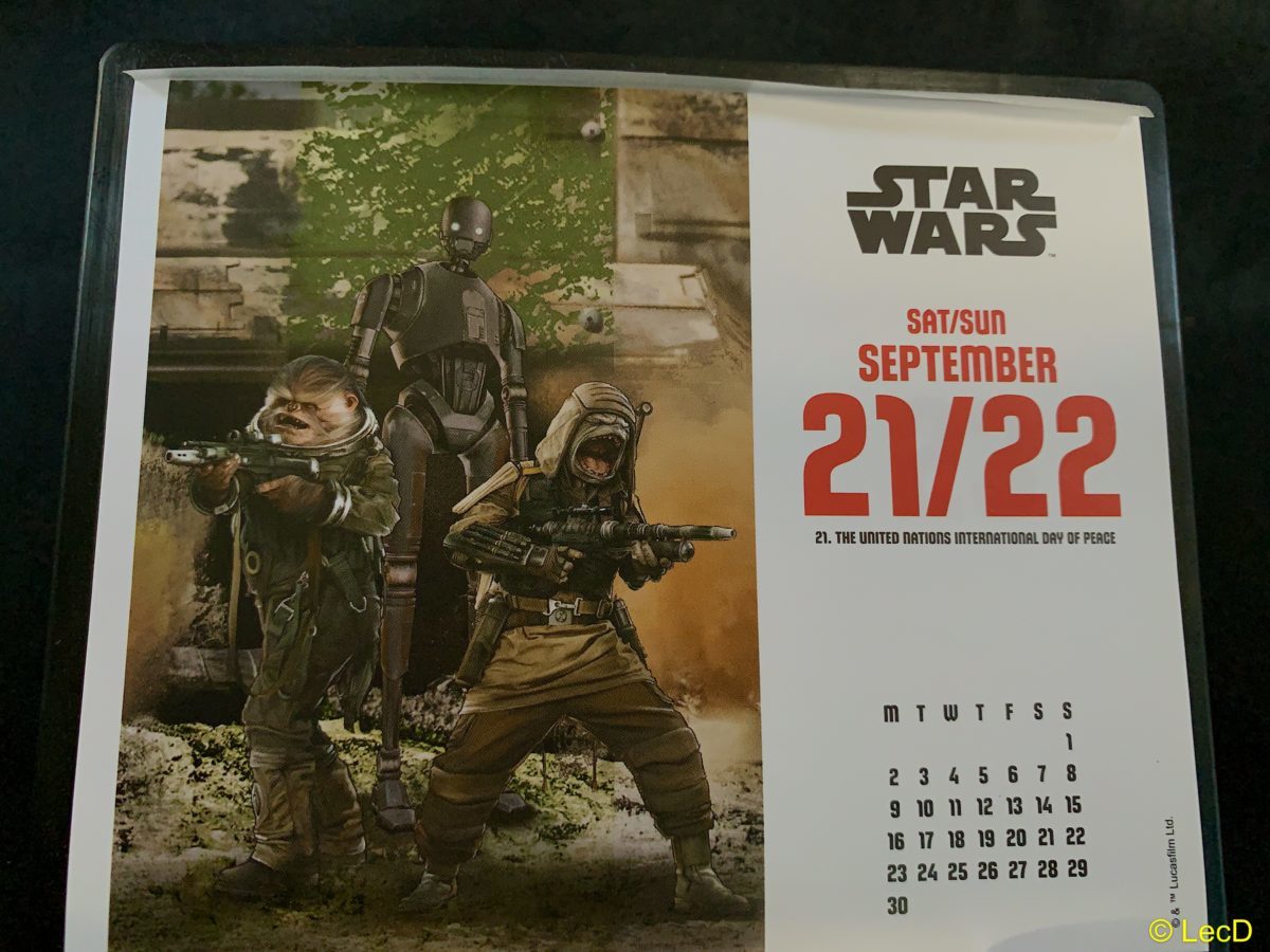 こんにちは。マスター・テッドです。 今日は9月21日 土曜日。明日22日の分も合わせて紹介だ! 週末もがんばって参りましょう。 今日のスター・ウォーズ カレンダー画像はこれ。 ローグ・ワンの面々! なんだけど、なんか地味(笑) K-2S... -