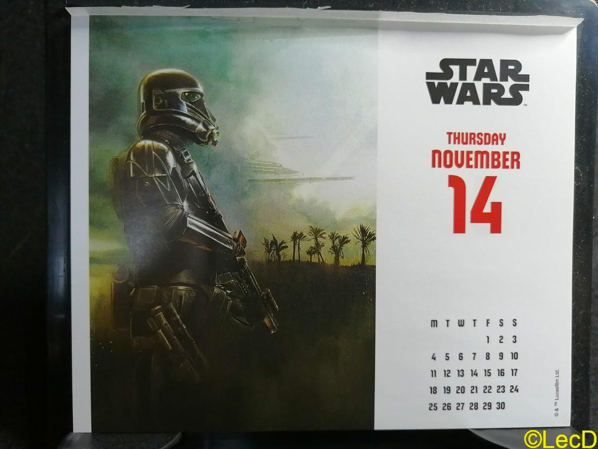 こんにちは。マスター・テッドです。 今日は11月14日 木曜日。 がんばって参りましょう。 今日のスター・ウォーズ カレンダー画像はこれ。 デス・トルーパー! ヤシの木っぽいのが見えるからスカリフなのでしょうかね。 そこそこ低空飛... -