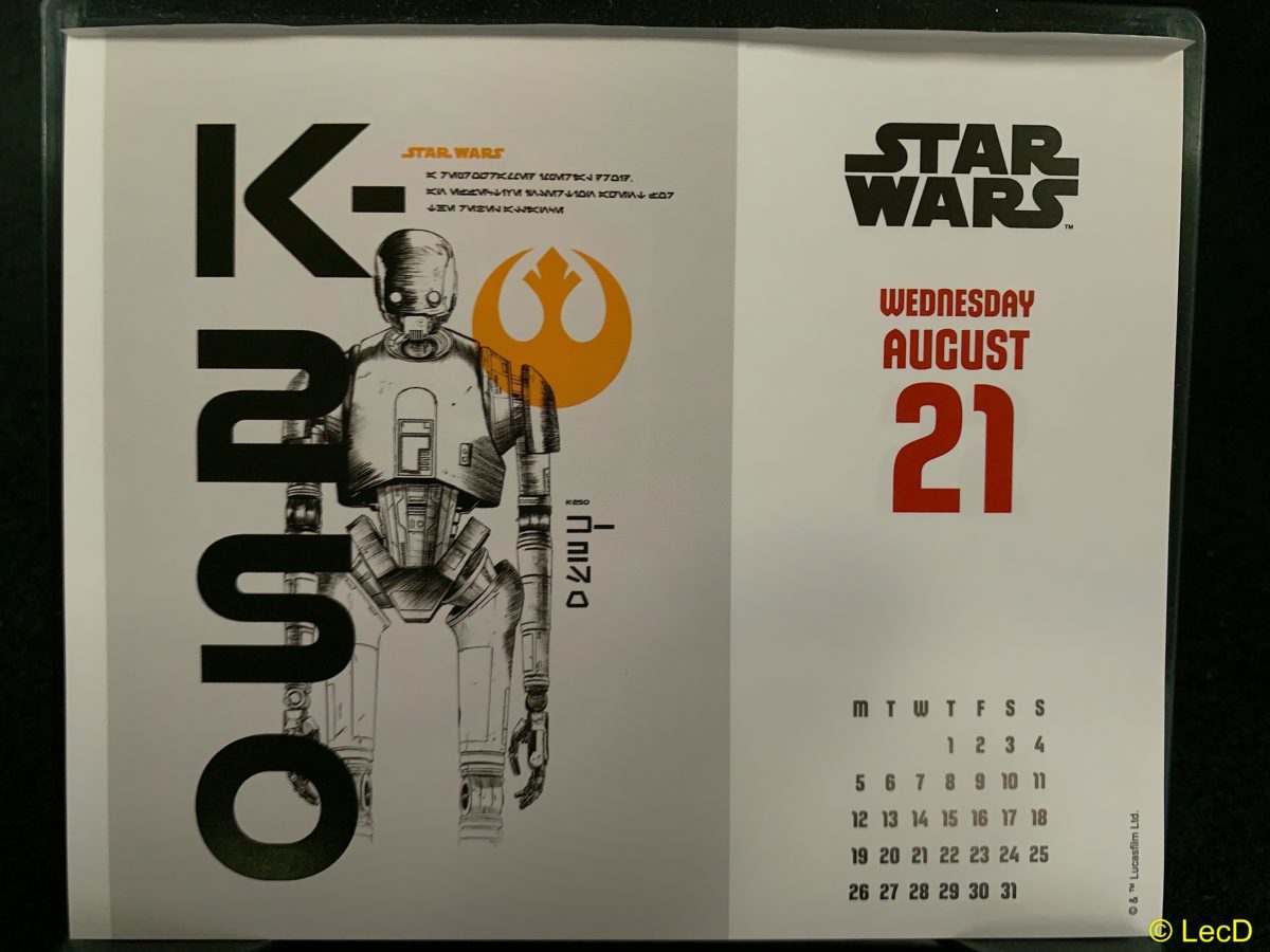 こんにちは。マスター・テッドです。 今日は8月21日 水曜日。 がんばって参りましょう。 今日のスター・ウォーズ カレンダー画像はこれ。 K-2SO! かっこいいよねえ。 C-3POみたいにおしゃべりで、チューバッカみたいに怪力。 こ... -