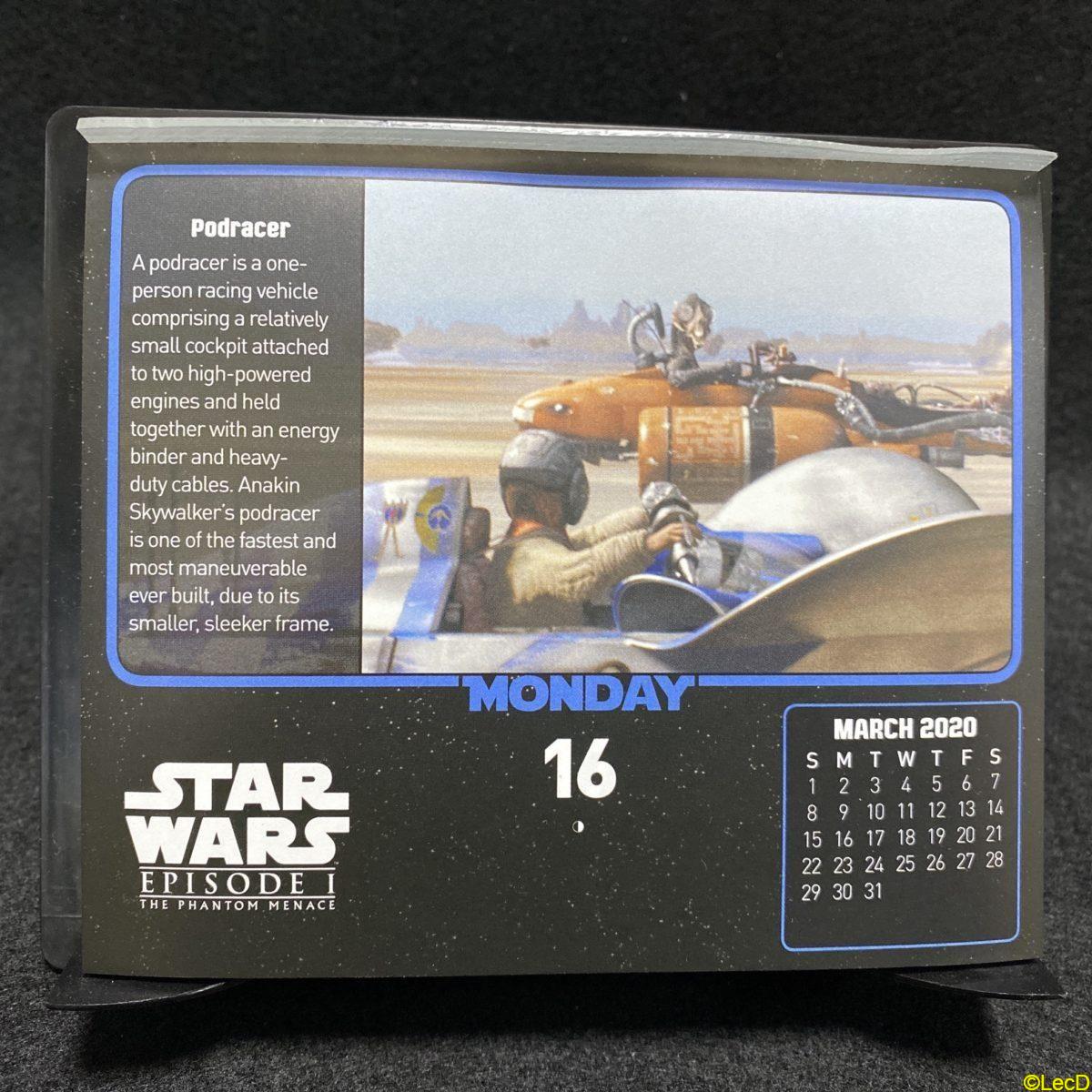 こんにちは。マスター・テッドです。 今日は3月16日 月曜日。 がんばって参りましょう。 本日のスター・ウォーズ カレンダー画像はこれ。 ファントム・メナスよりポッドレーサー! Google翻訳によると ポドラサーポドラサーは、2つの高性能エンジンに取り... -