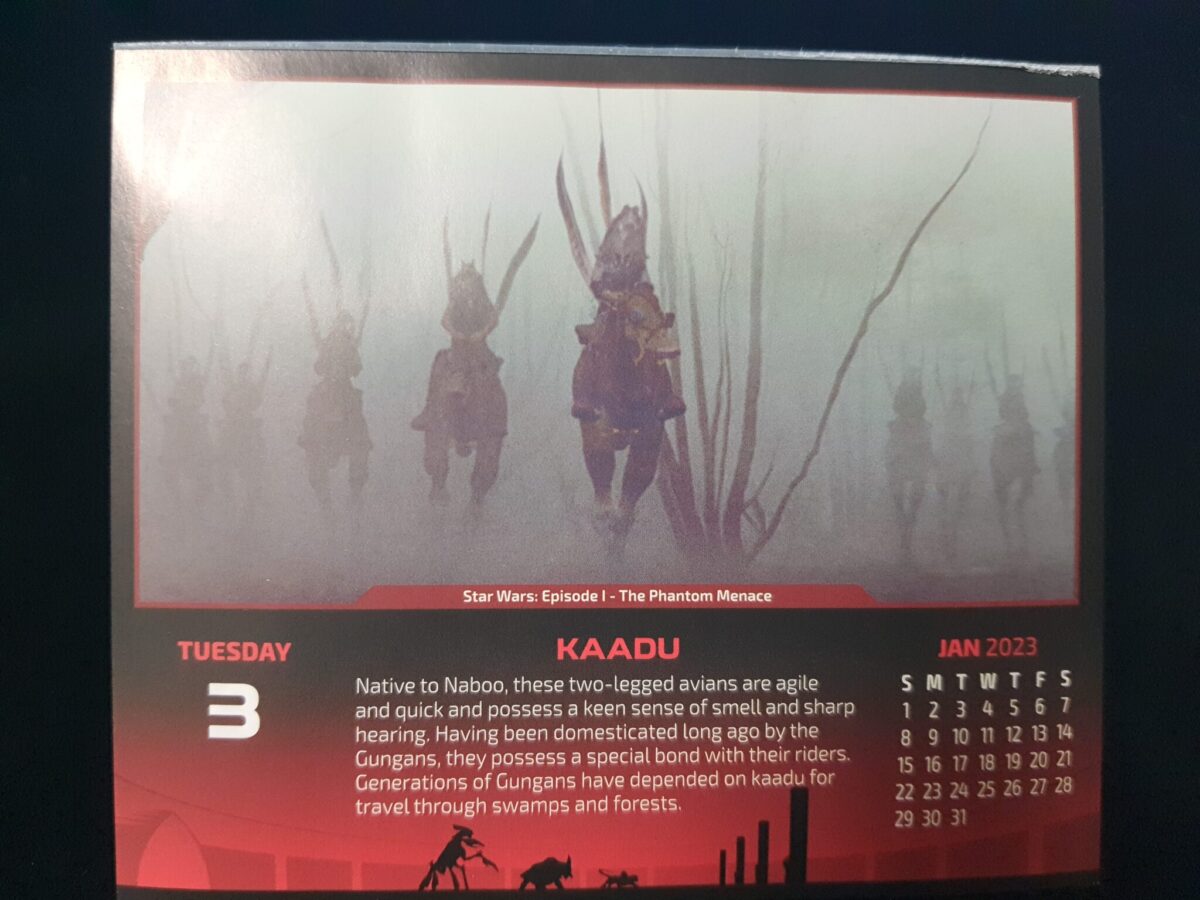 こんにちは。マスター・テッドです。 今日は1月3日 火曜日。 今日まで休みでーす。 本日のスター・ウォーズ カレンダー画像はこれ。 エピソード I - ファントム・メナスよりカドゥ! うわ、興味のないグンガン系だよ・・・。 でも正史のリハビリにはいいか... -