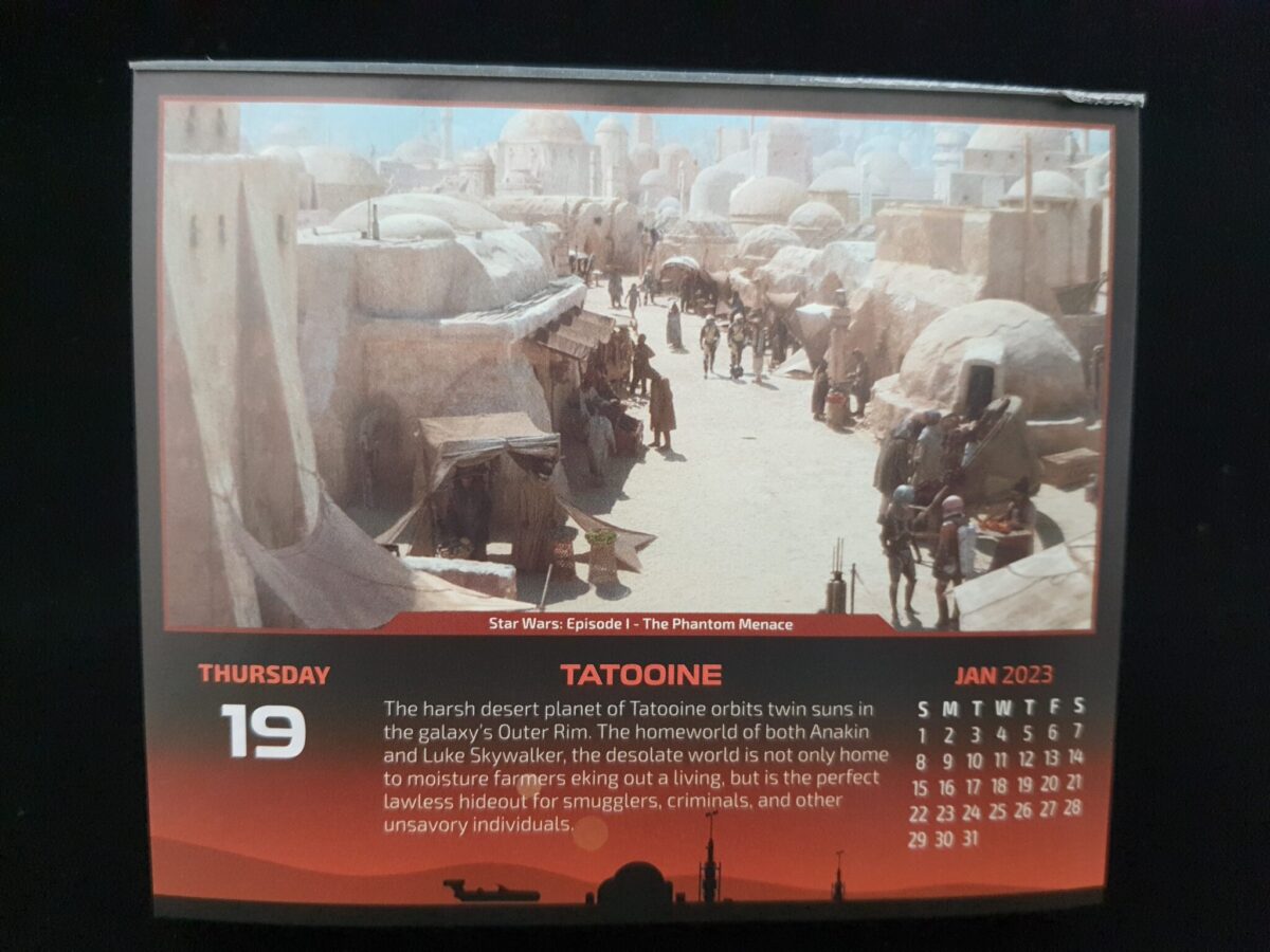 こんにちは。マスター・テッドです。 今日は1月19日 木曜日。 昨日のバッド・バッチはレース回、毛色変わってましたなあ。 本日のスター・ウォーズ カレンダー画像はこれ。 エピソードⅠ - ファントム・メナスよりタトゥイーン! Google翻訳によると The ha... -