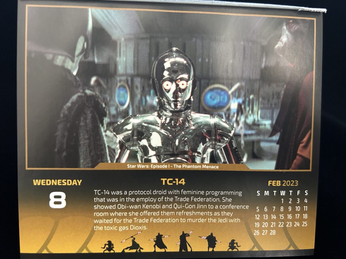 こんにちは。マスター・テッドです。 今日は2月8日 水曜日。 バッチリがんばって参りましょう。 本日のスター・ウォーズ カレンダー画像はこれ。 スター・ウォーズ:エピソードⅠ-ファントム・メナスよりTC-14! Google翻訳によると TC-14 was a protocol d... -