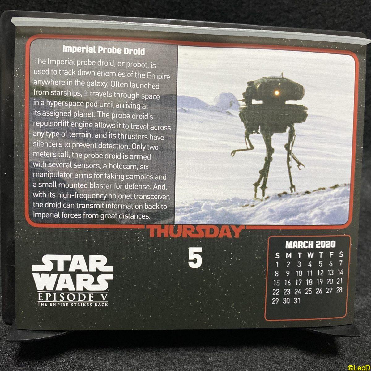 こんにちは。マスター・テッドです。 今日は3月5日 木曜日。 スカイウォーカーの夜明け、今日で終わりだ。 でも頭痛が酷い。 がんばって参りましょう。 本日のスター・ウォーズ カレンダー画像はこれ。 帝国の逆襲よりインペリアル・プローブ・ドロイド! ... -