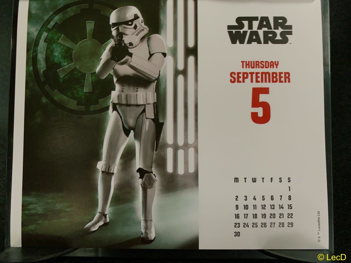 こんにちは。マスター・テッドです。 今日は9月9日 月曜日。 今週もがんばって参りましょう。 今日のスター・ウォーズ カレンダー画像はこれ。 ストームトルーパー! やたらカッコイイですね。 ヤラレ役なのに(笑) ザ・マンダロリアンでも活... -