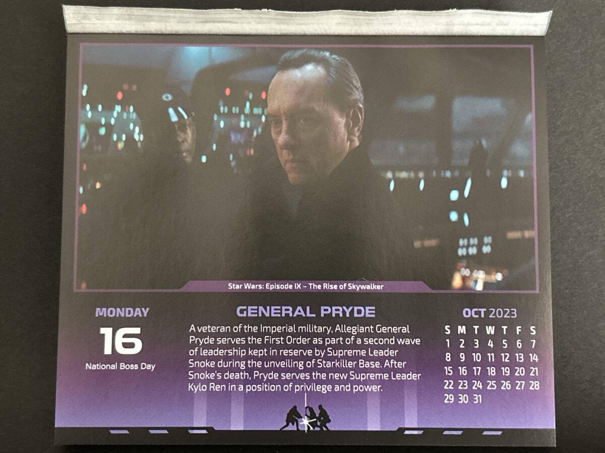 こんにちは。マスター・テッドです。 今日は10月16日 月曜日。 がんばって参りましょう。 本日のスター・ウォーズ カレンダー画像はこれ。 スター・ウォーズ:エピソードⅨ-スカイウォーカーの夜明けよりプライド将軍! 恐ろしいことに写真見ただけでは名前... -