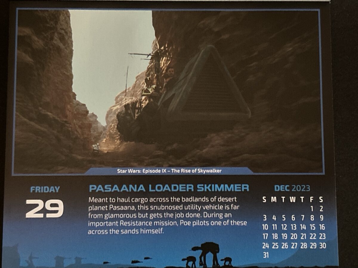 こんにちは。マスター・テッドです。 今日は12月29日 金曜日。 がんばって参りましょう。 本日のスター・ウォーズ カレンダー画像はこれ。 スター・ウォーズ:エピソードⅨ-スカイウォーカーの夜明けよりパサーナ・ローダー・スキマー! 金曜日はビークルの... -