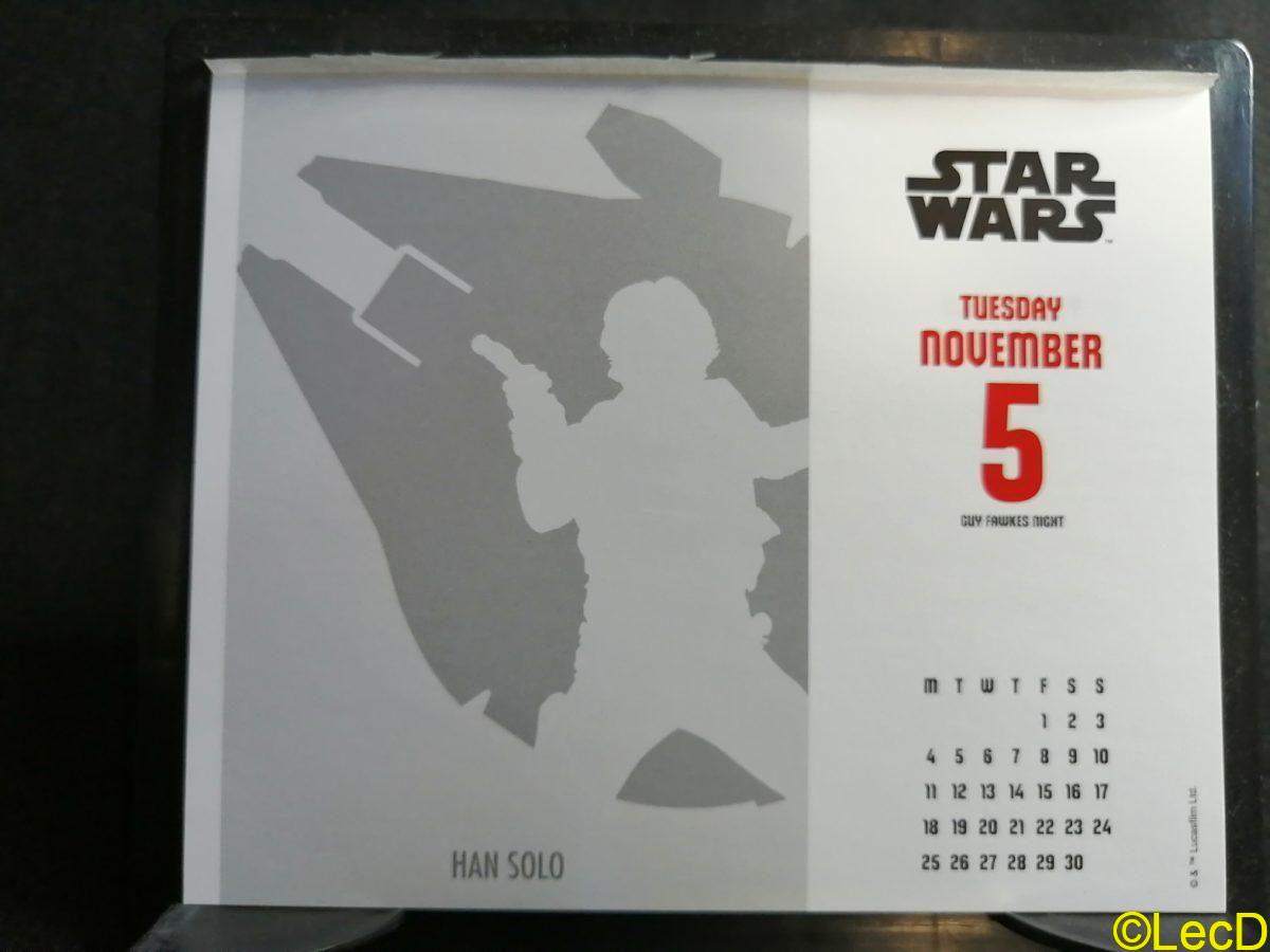 こんにちは。マスター・テッドです。 今日は11月5日 火曜日。 がんばって参りましょう。 今日のスター・ウォーズ カレンダー画像はこれ。 ハン・ソロ! って言っていいのか。 ミレニアム・ファルコンのほうが大々的に出ていますが。 こ...