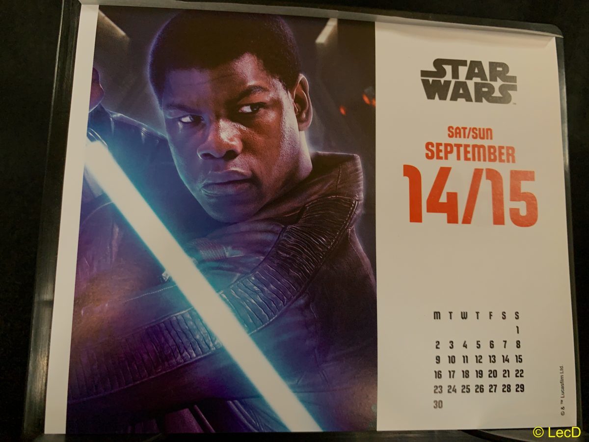 こんにちは。マスター・テッドです。 今日は9月14日 土曜日。明日15日の分も合わせて紹介だ! 週末もがんばって参りましょう。 今日のスター・ウォーズ カレンダー画像はこれ。 フィン! やっぱりね~、フィンがライトセーバー持ってる... -