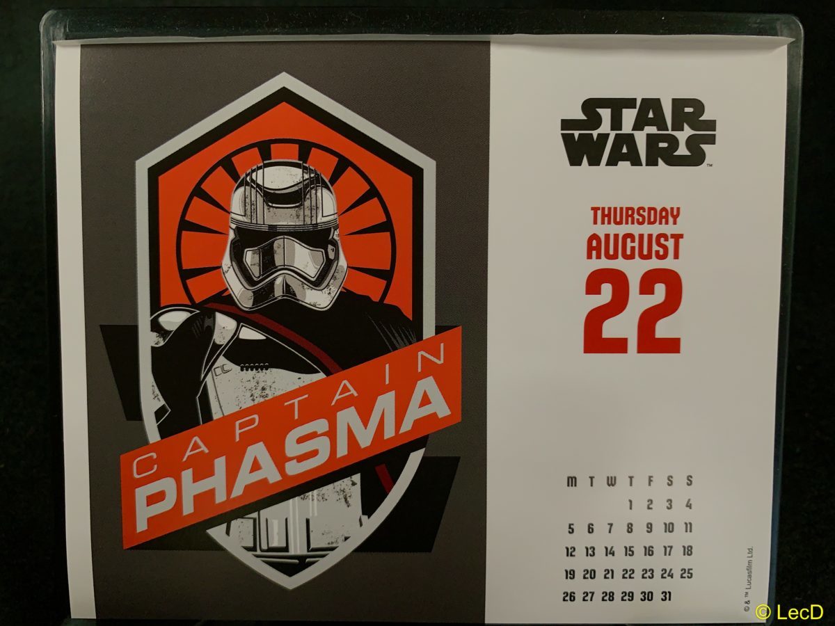 こんにちは。マスター・テッドです。 今日は8月22日 木曜日。 がんばって参りましょう。 今日のスター・ウォーズ カレンダー画像はこれ。 キャプテン・ファズマ! そういえばこのカレンダー、ファズマも案外よく出てくるような気... -