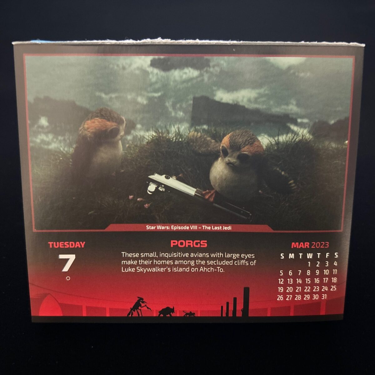こんにちは。マスター・テッドです。 今日は3月7日 火曜日。 がんばって参りましょう。 本日のスター・ウォーズ カレンダー画像はこれ。 スター・ウォーズ:エピソードⅧ-最後のジェダイよりポーグ! Google翻訳によると These small, inquisitive avians w...